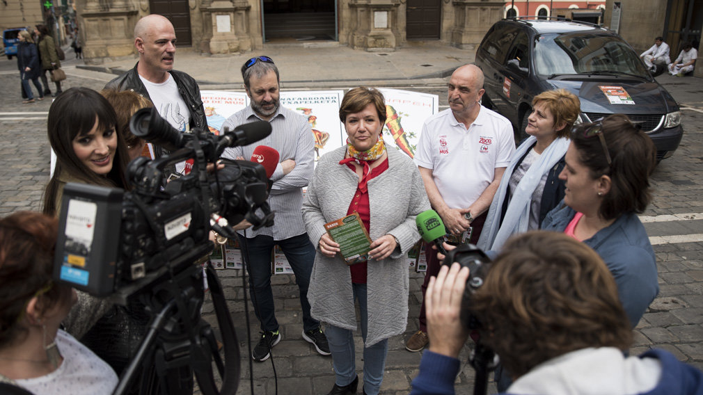 Las dos asociaciones han presentado este viernes en la Plaza del Ayuntamiento de Pamplona el campeonato con una puesta en escena a la altura del espectacular premio. Cuatro enormes cartas, que juntas sumaban 31 puntos, han lanzado este órdago a todos los amantes del mus en Navarra.
