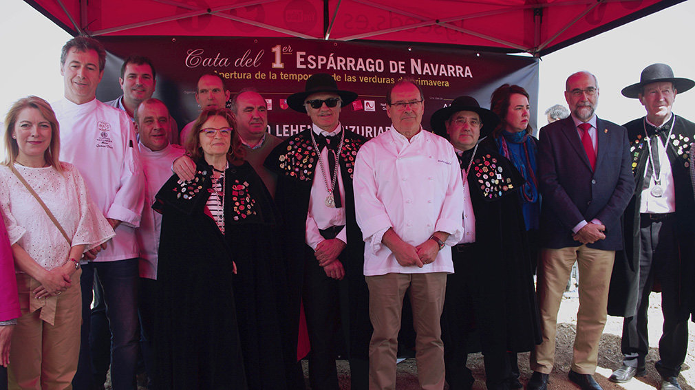 Antes de brindar, el cocinero vasco, Hilario Arbelaitz y parte de los invitados se han dirigido a los caballones próximos para protagonizar la recogida del primer espárrago. Después, los asistentes han degustado el fruto, cocido a la manera tradicional y en carpaccio de espárrago de Navarra, con aceite y sal.