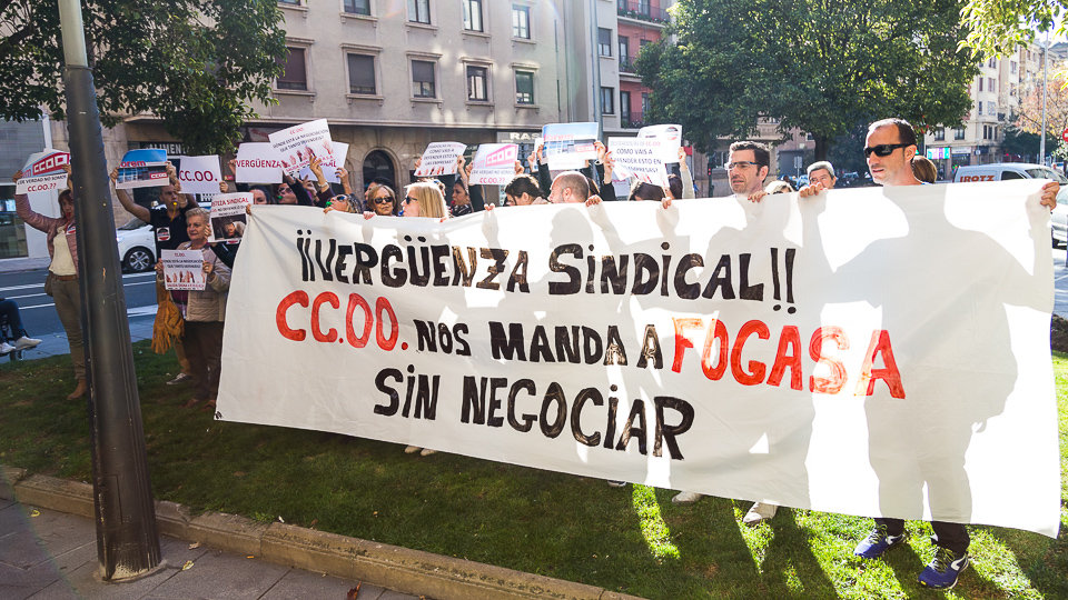 Los trabajadores, que se han concentrado este jueves frente a la sede de CCOO en Pamplona, han pedido "una salida digna, igual que tuvieron nuestros compañeros de CCOO" y han exigido al sindicato sus "derechos laborales" y que "cumpla lo que promete y defiende".