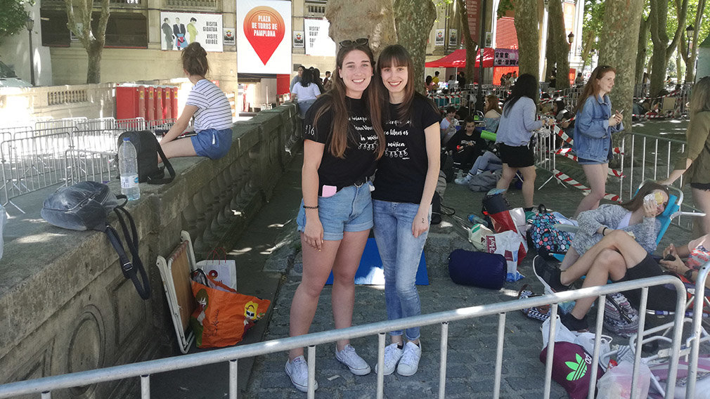 Lucía Sancho, Alejandra Alonso, Paula Ucar y Silvia Azanza son otro grupo de chicas de 15 y 16 años, de Pamplona, que "lleva en la cola desde las 05:00 de la madrugada para ser de las primeras y tener mejor sitio". "Algunas no hemos podido dormir y otras solo tres horas", han asegurado.