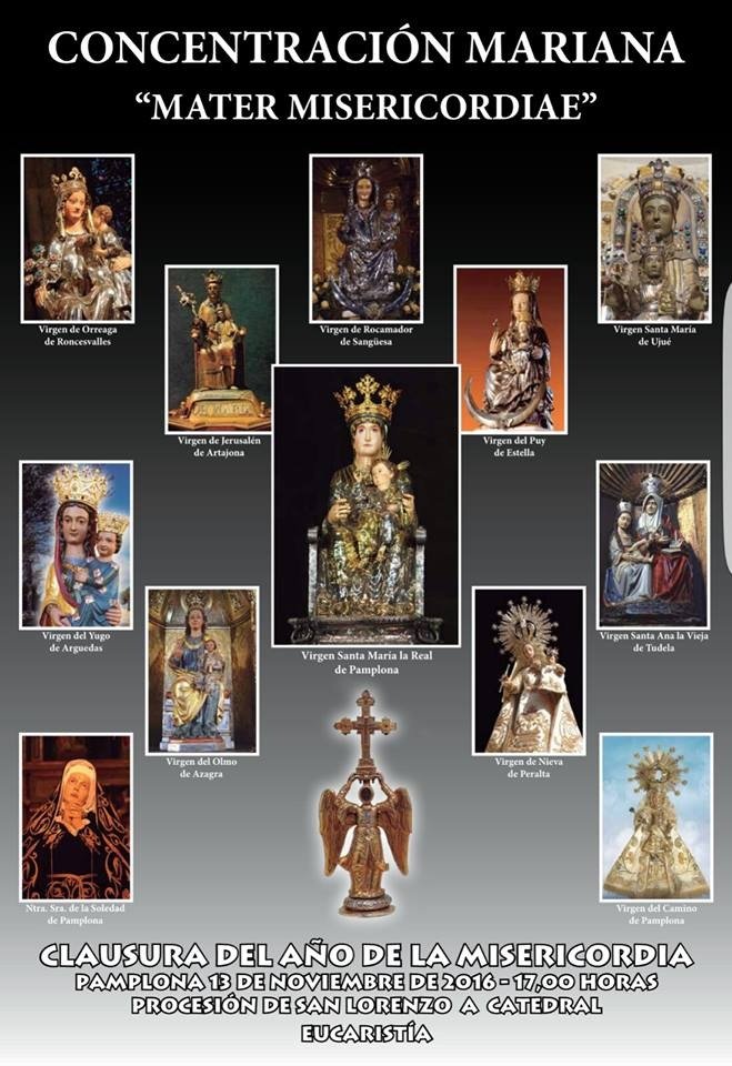 Bajo el lema "Mater Misericordiae", se ha organizado una concentración mariana que tiene como acto principal una procesión desde la parroquia de San Lorenzo hasta la Catedral de Pamplona, donde se oficiará una solemne misa para cerrar el año jubilar y se realizará también una gran colecta destinada a las víctimas del terremoto de Haití. La iglesia navarra ha escogido la figura de la Virgen como la máxima exponente de la misericordia y compasión que se ha destacado durante este año jubiloso.