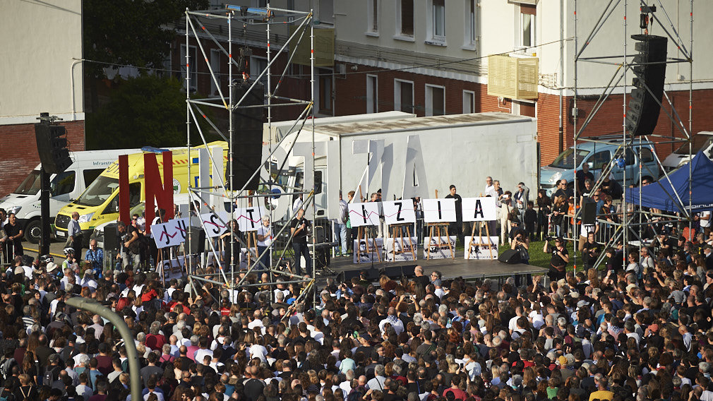 Finalmente, los padres y madres de los condenados por la brutal agresión han subido al escenario y han portado una pancarta con el mensaje eskerrik asko ("gracias"), dirigido a los asistentes.
