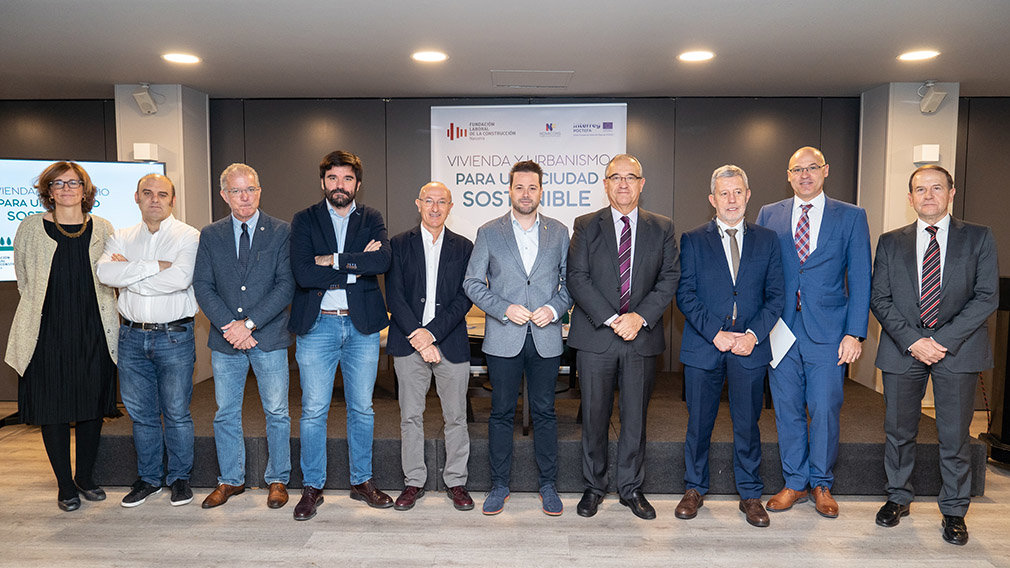 Autoridades y ponentes participantes en la jornada Vivienda y Urbanismo para una Ciudad Sostenible organizada por FLC-Navarra. CEDIDA