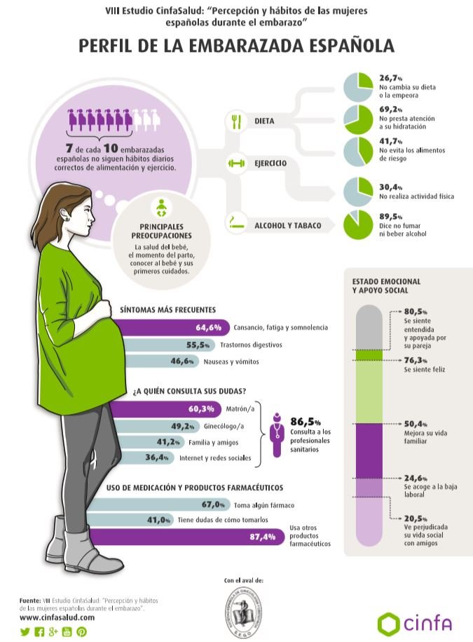 De hecho, según el VIII Estudio CinfaSalud, las mujeres embarazadas navarras son las que en mayor proporción (32,6%) necesitan acogerse a la baja laboral durante la gestación, sobre todo durante el tercer trimestre, que aglutina el 42,7% de las bajas en nuestro país. De las españolas que la necesitan, el 55,1% sufre más síntomas emocionales, frente al 32,4% que padece en mayor medida trastornos físicos. De media, las bajas duran un poco más de catorce semanas.