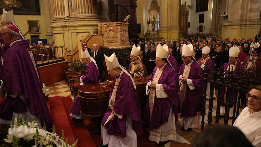 La Misa de exequias por el cardenal Fernando Sebastián, arzobispo emérito de Pamplona y Tudela, se ha celebrado este sábado a las 12 horas en la Catedral de Málaga y ha sido presidida por el obispo de Málaga, Jesús Catalá, y numerosos obispos españoles.