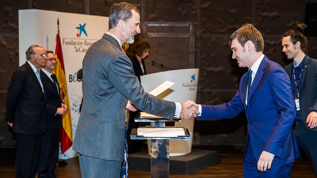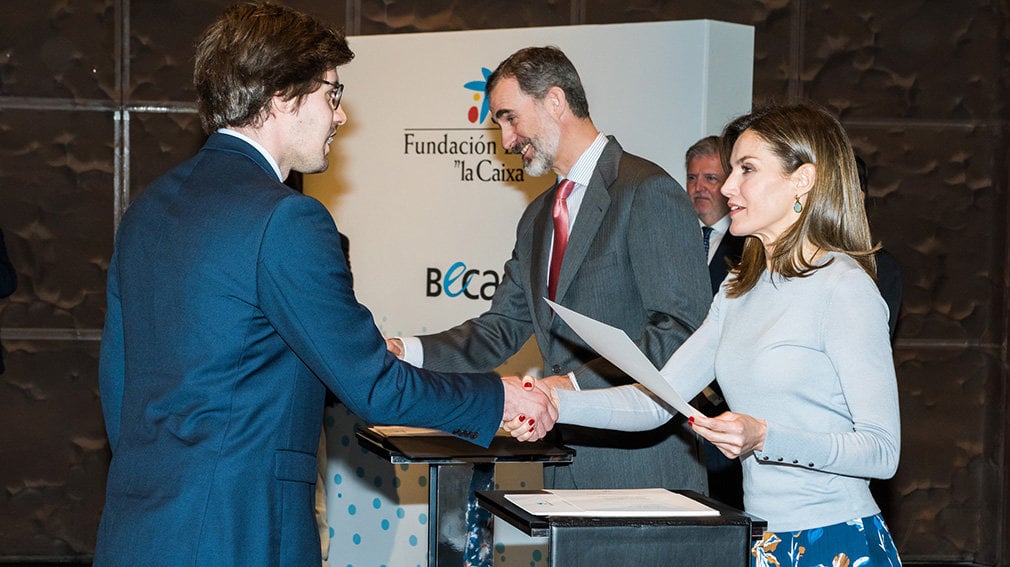 Tres estudiantes navarros reciben una beca de formación de La Caixa de manos de los Reyes de España