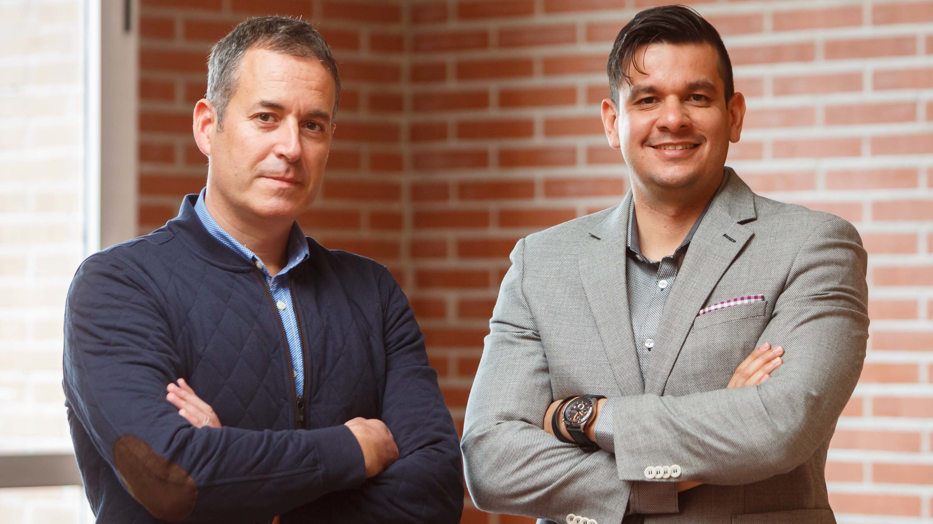 Dos de los autores del artículo, los investigadores Mikel Izquierdo y Robinson Ramírez-Vélez, posan en la UPNA.