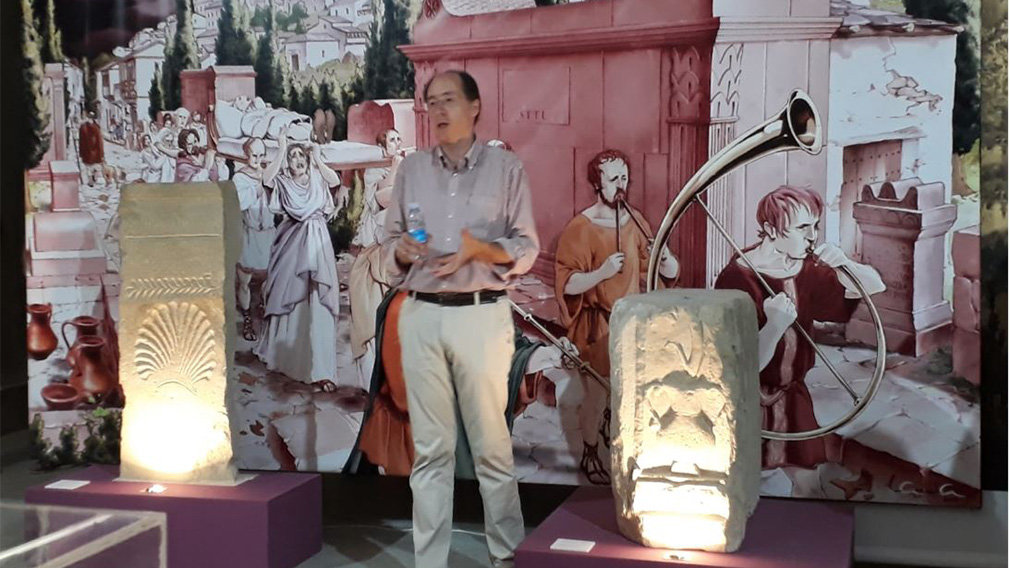 Javier Andreu, director del Diploma de Arqueología de la Universidad de Navarra, ha querido recordar las tres ideas principales sobre las que versa la exposición: el lenguaje del poder que se muestra en Santa Criz de una manera espectacular, el mundo funerario con la única necrópolis conservada in situ en Navarra y la vida cotidiana de los habitantes.