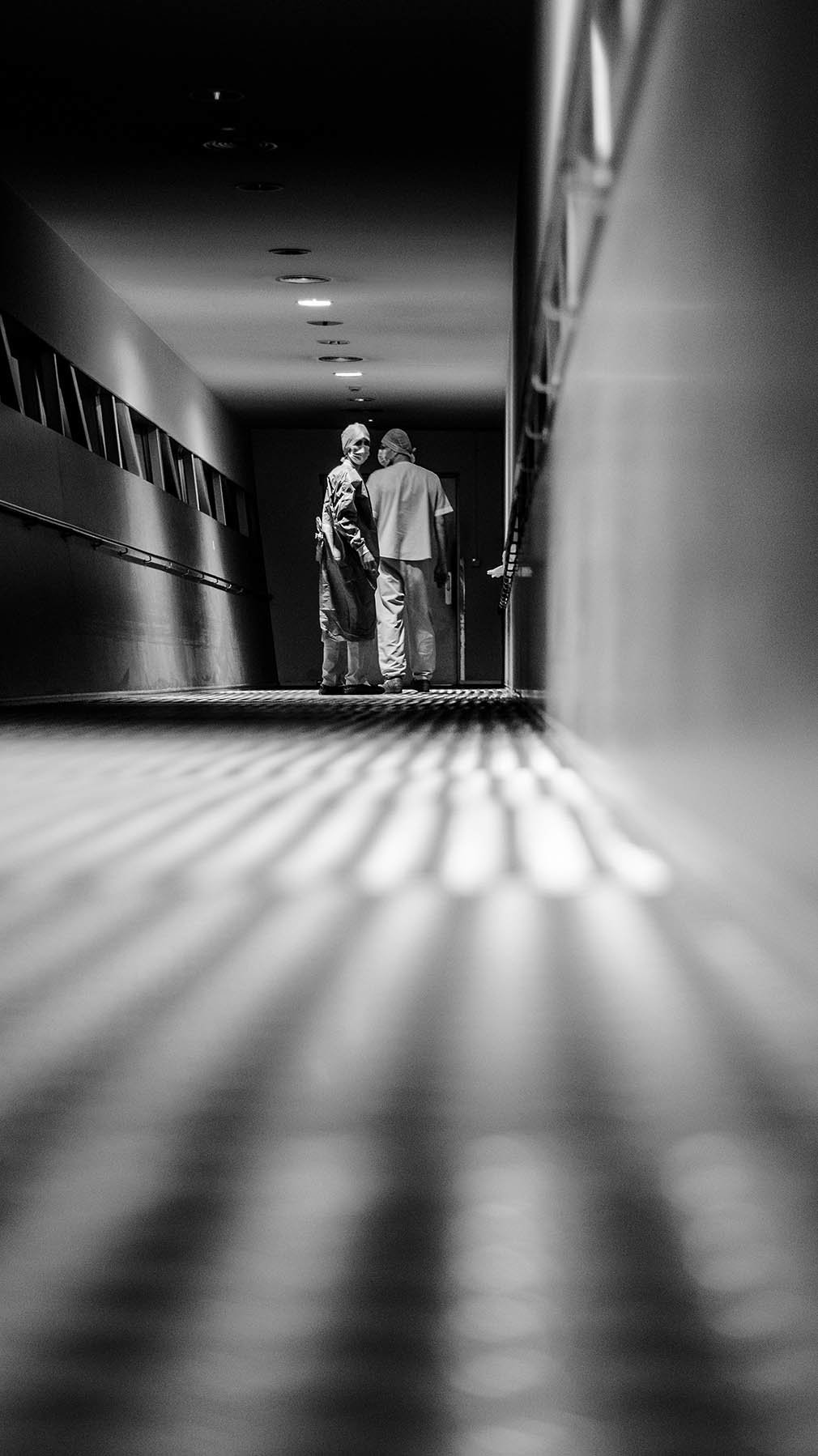 A partir de la invitación 'Déjame guiarte', la exposición realiza un recorrido a través de una treintena de fotografías, la mayoría de ellas en blanco y negro, que reflejan la continuidad de la actividad hospitalaria durante la noche y en días no laborables para la mayoría de la población.