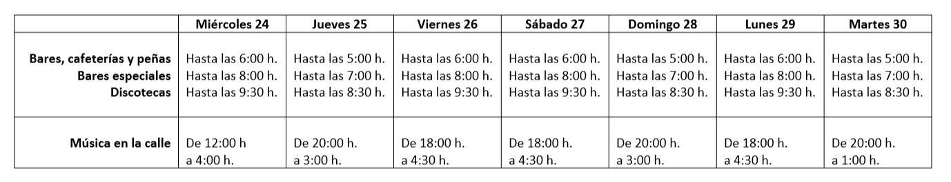 Asimismo, ese día el horario de música en la calle se amplía hasta las 4.30 de la madrugada. En compensación por esta ampliación, el jueves 25 la música en la calle comenzará dos horas más tarde.