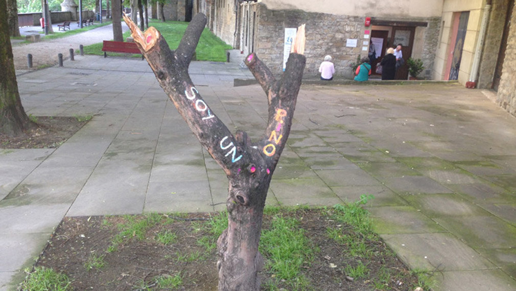 Sin embargo denuncian que "hace escasos días los vecinos de esta zona de Pamplona observaron perplejos como la totalidad de los citados árboles habían desaparecido, habiéndose llevado los autores de su destrucción todo vestigio de los árboles derribados, no se ha podido observar ni una raíz, ni una rama. Los autores de esta desagradable actuación se han esmerado en ello".