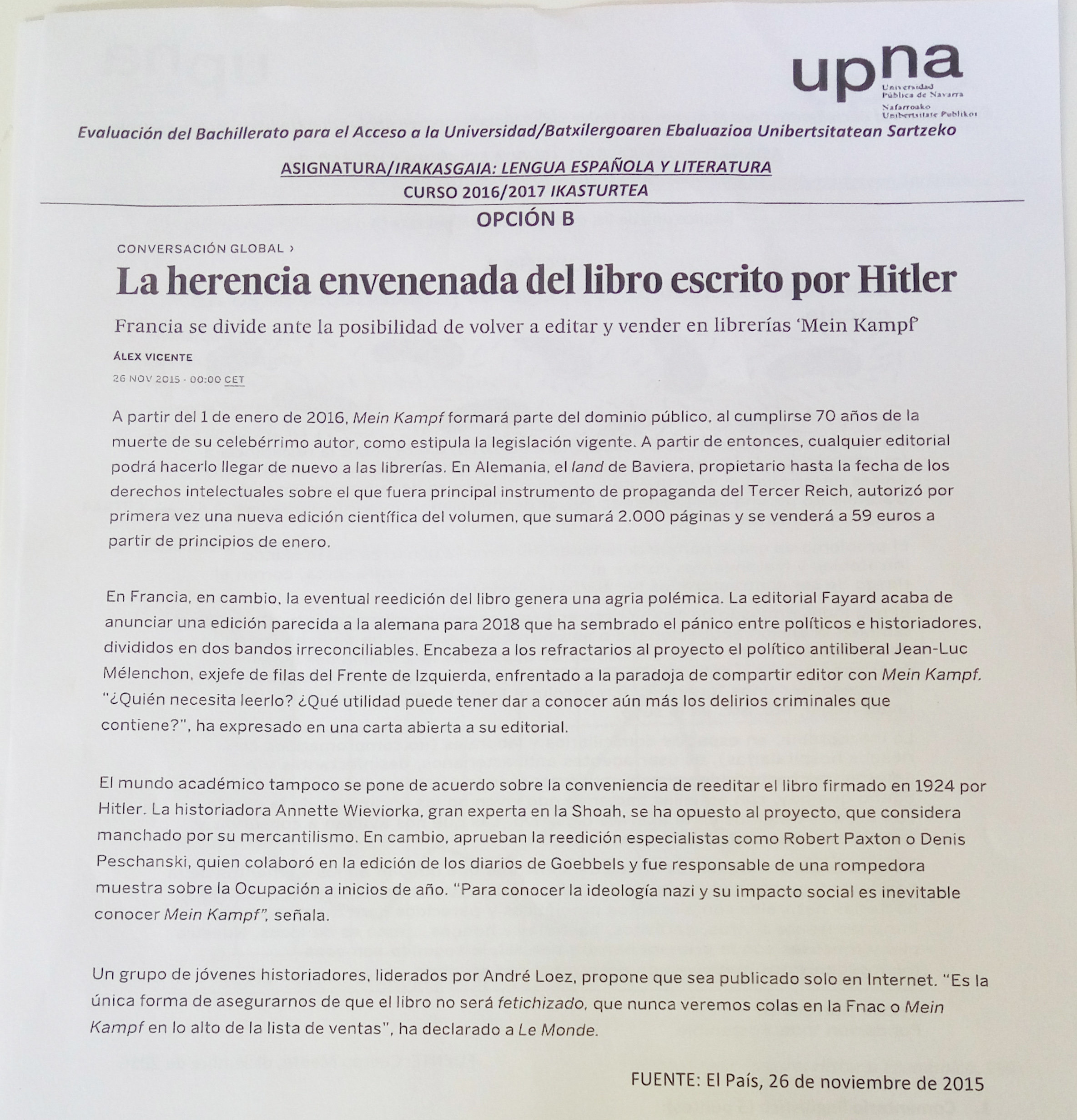 Estas son las preguntas que han entrado en las materias obligatorias de la Selectividad, que se celebra esta semana en la UPNA.