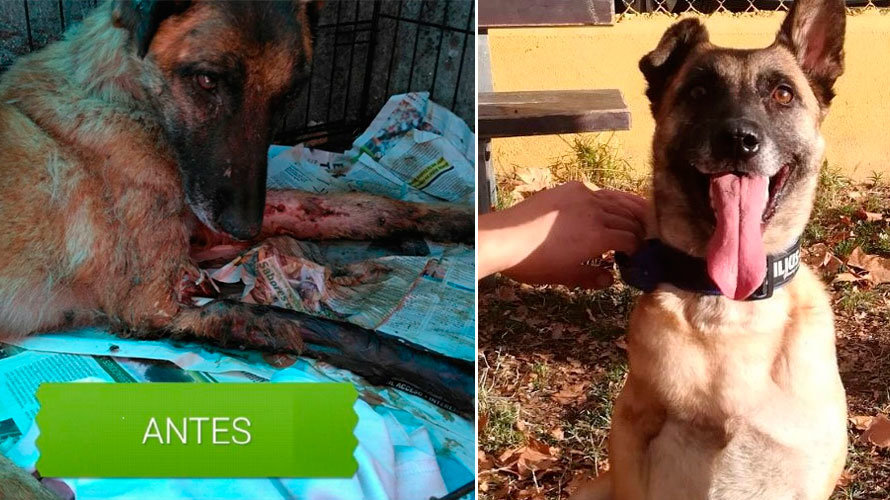 (A la izquierda, una foto de cómo fue encontrada Vespa y, a la derecha, una en la actualidad. CEDIDA)