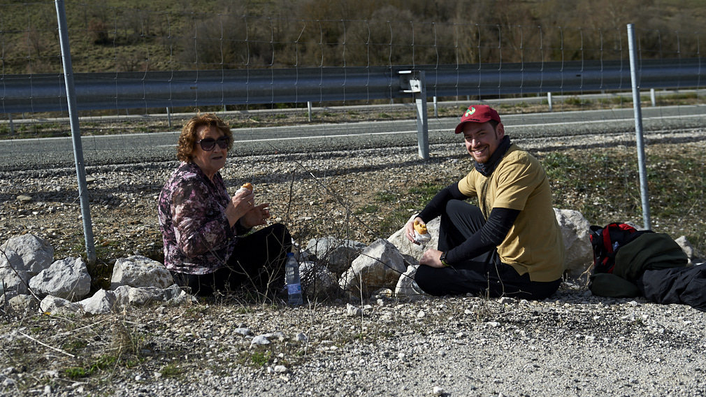 Hay otros, que sin embargo prefieren realizar la Javierada junto a sus familiares y amigos. Es el caso de Pilar y Jesús, madre e hijo, que llevan 17 años realizando juntos la Javierada. "Hemos salido a las ocho de la mañana del cruce de Elorz y ahora hemos parado para almorzar. Vivimos en Pamplona y mientras podamos seguiremos realizando el camino madre e hijo juntos", expresaban.