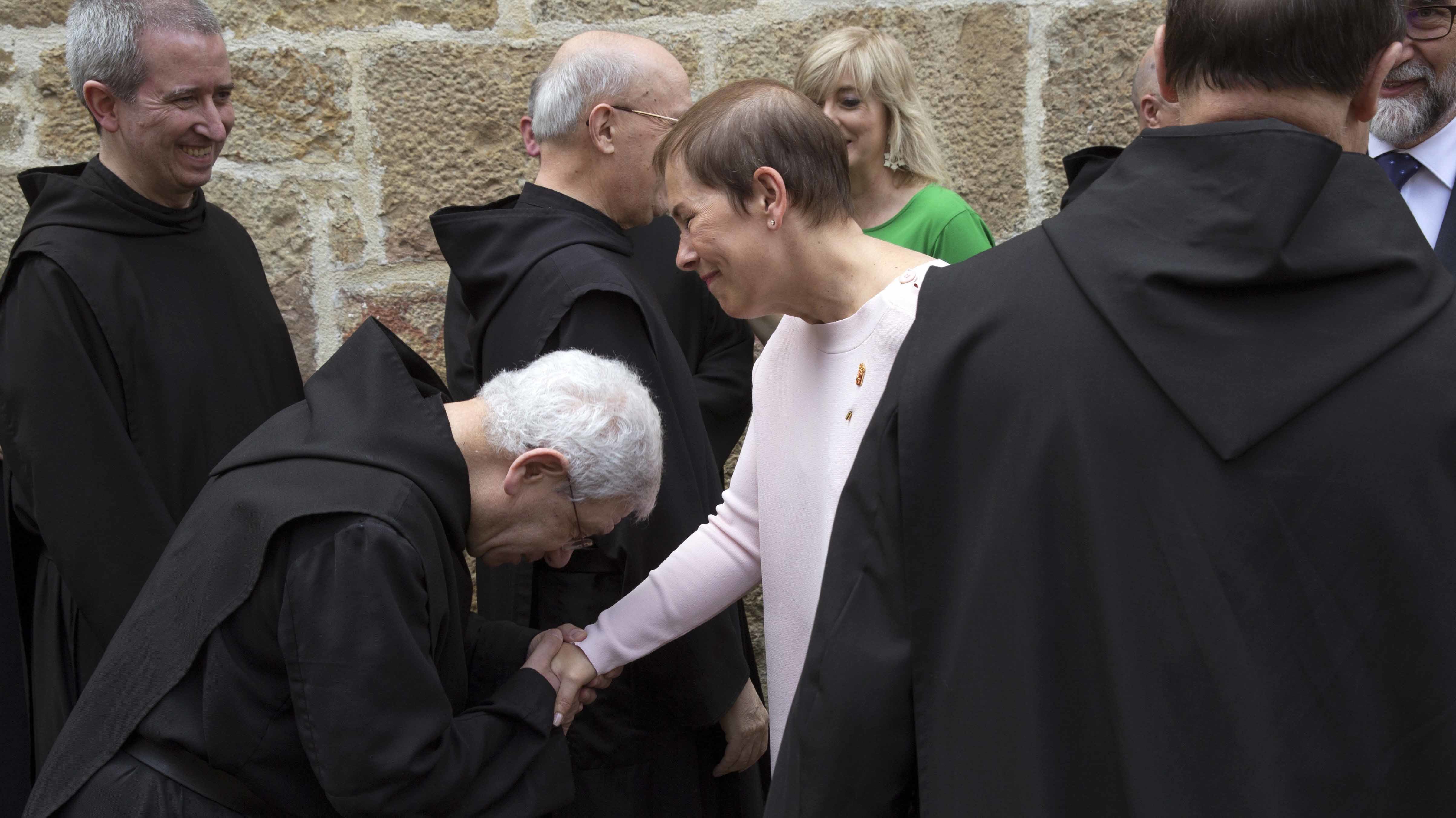Por su parte, Ainhoia Aznárez ha ofrecido al monasterio el libro que contiene las ponencias del ‘Simposio hacia la codificación del Derecho Civil de Navarra’, perteneciente a la colección Iura Vasconiae, y el vicepresidente del Gobierno, Manu Ayerdi, ha hecho entrega de una urna de plata con el donativo del Ejecutivo para agradecer a los monjes la custodia del mausoleo.