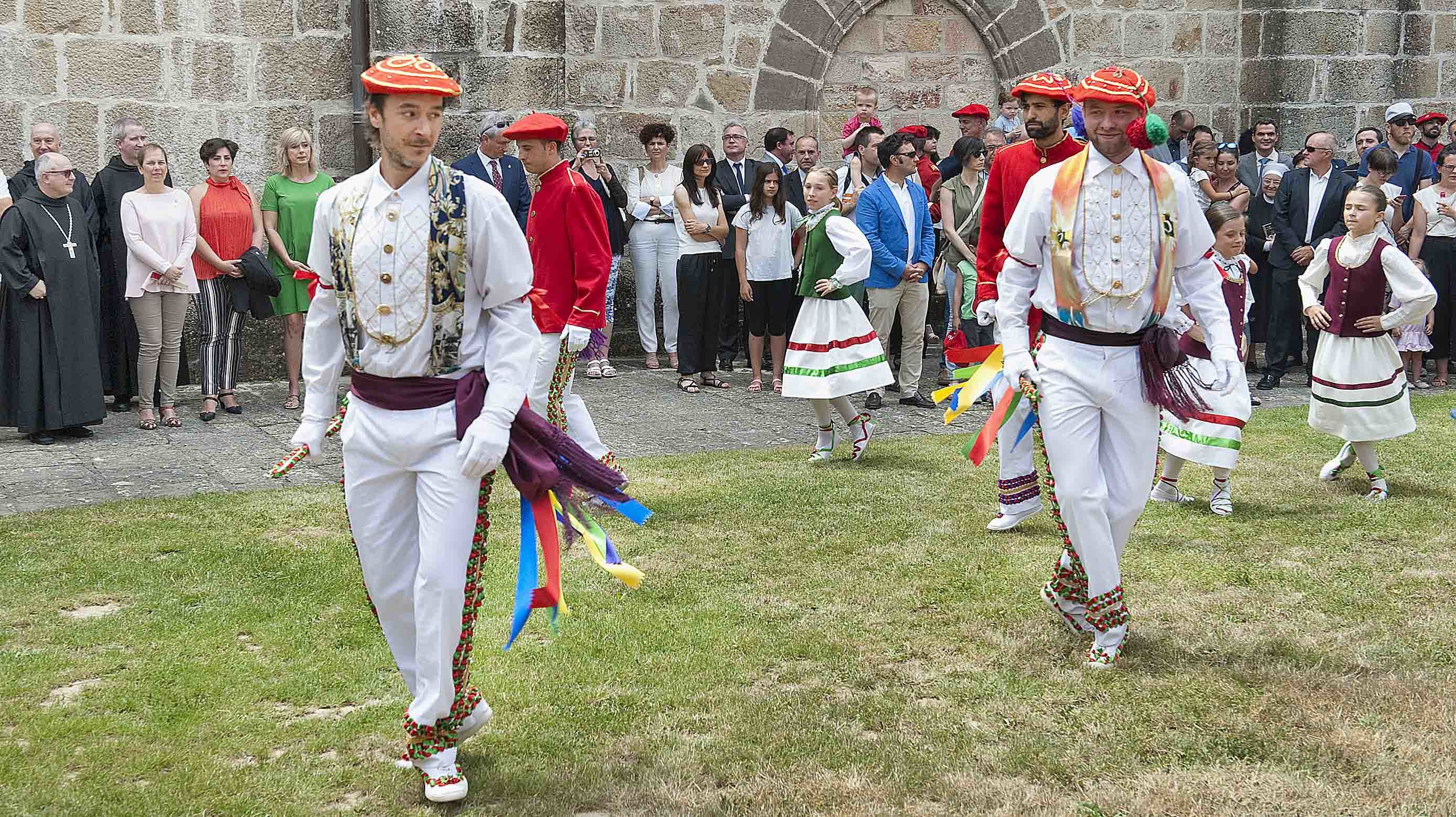 Tras el acto, la comitiva se ha dirigido a la hospedería, en cuyo patio ha tenido lugar un espectáculo de danzas interpretado por los Bolantes de Valcarlos, que han escenificado los bailes Martxa, Bolant Dantza, Lauetan Erdizka y Jauziak.