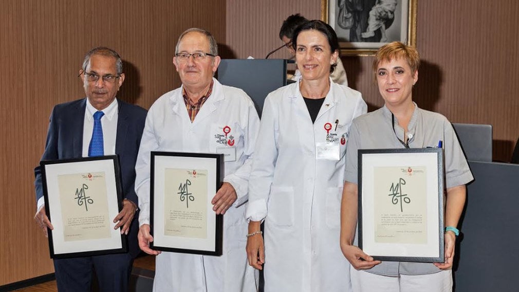 Las personas homenajeadas: medico jubilado, Bosco Cordeiro; voluntario, Francisco Saragüeta, enfermera en ejercicio, Laura Guembe. Todos ellos, junto a Patricia Segura, directora gerente. CEDIDA