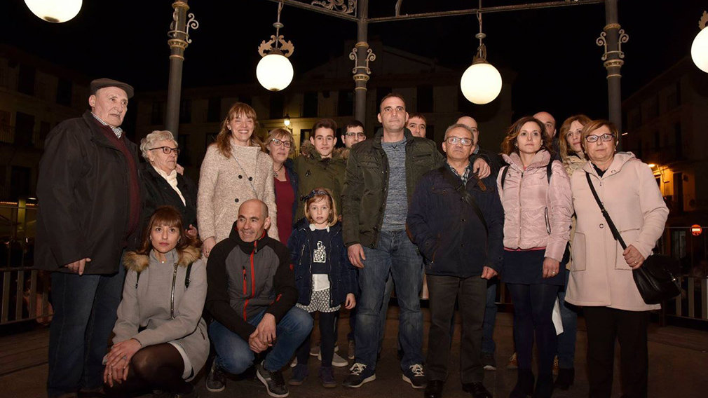 La familia del pequeño Izan, durante la concentración celebrada en la plaza de los Fueros de Tudela. ÁNGEL ÁLVARO