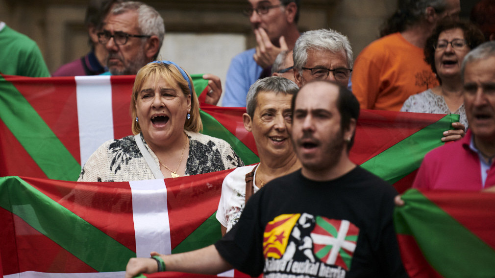 En una concentración celebrada en la Plaza del Ayuntamiento de Pamplona y presidida por una gran ikurriña, el joven Unai Ekiza ha leído un comunicado en el que se afirma que, "aunque parezca mentira, todavía hoy, septiembre de 2019, tenemos que seguir saliendo a la calle contra la persecución de la ikurriña y en su defensa".