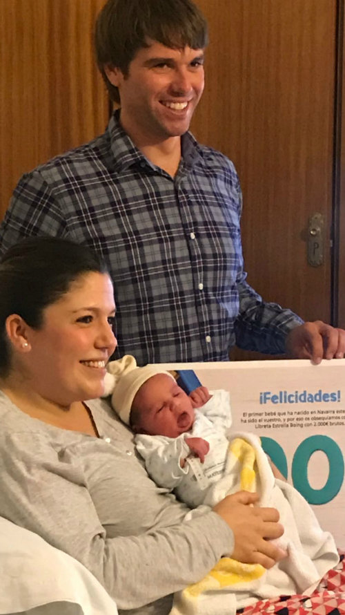 Ellos son los padres de Unax, su primer hijo, que también se ha convertido en el primer pamplonés de 2018. A las 3.45 horas ha llegado al mundo en el Complejo Hospitalario de Navarra con un peso de 3,520 kilos y una estatura de 50 centímetros.
