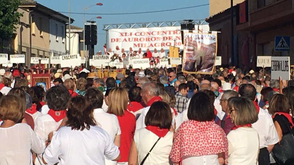 Más de 2.500 auroros y todos sus acompañantes han llegado de madrugada a Milagro para despertar al pueblo ribero con sus armoniosas melodías. Los actos oficiales de la concentración han arrancado a las 7 de la mañana en la Casa de Cultura, donde los diferentes grupos han ido reuniéndose.