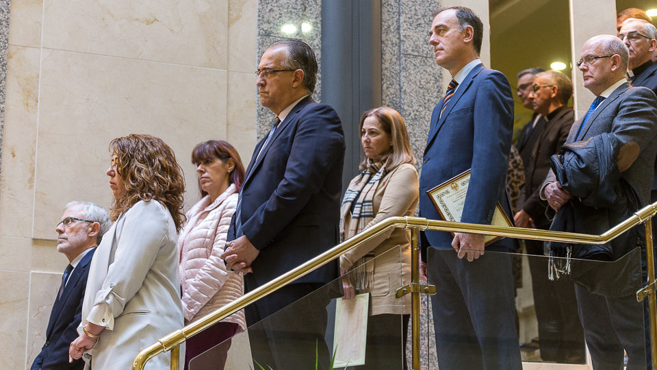 "El trabajo incansable de todas las instituciones y de los cuerpos de seguridad", en Navarra y en el conjunto de España, "para elaborar, para gestionar y para garantizar el cumplimiento de las leyes que determinan las libertades, los derechos y las obligaciones de los españoles son los ladrillos, el cemento y la mano de obra que construyen y refuerzan cotidianamente el edificio de nuestra paz y nuestra convivencia", ha subrayado.
