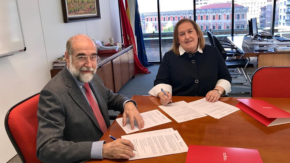 El documento ha sido suscrito por el consejero de Salud, Fernando Domínguez, y por la presidenta del COFNA, Marta Gallipienzo. GOBIERNO DE NAVARRA
