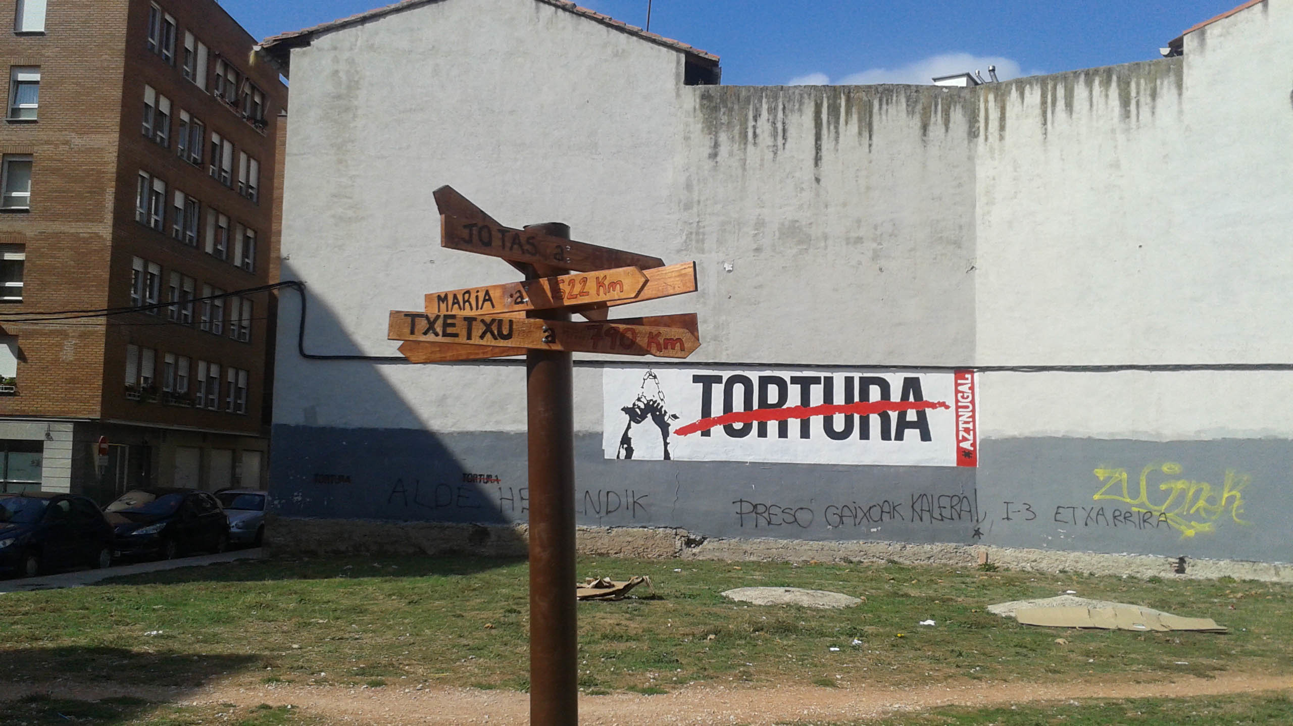 El PPN de Burlada ha denunciado este lunes la presencia de postes entre las calles Hilarión Eslava y Joaquín Azcárate de Burlada donde se nombra a varios presos de ETA y la distancia de los centros donde se encuentran cumpliendo su pena.