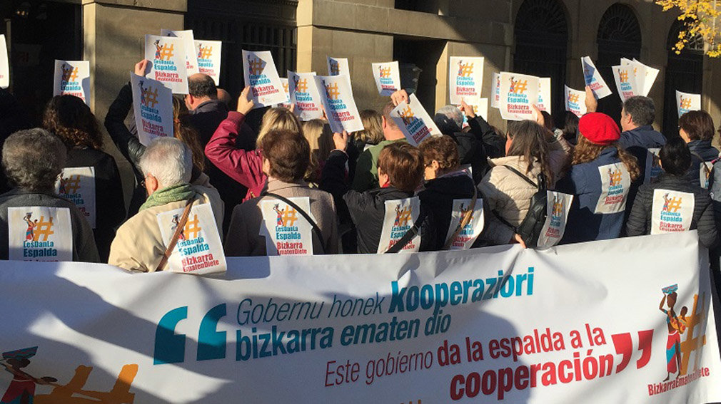 La portavoz de la Coordinadora de ONGD de Navarra, Amaia Campion, ha leído un comunicado en el que ha calificado de "vergonzoso que un gobierno que abandera la justicia social y la solidaridad internacional, que considera la cooperación internacional como una política exterior esencial, a la hora de la verdad da la espalda a millones de personas en el Sur, provocando que todas sus promesas caigan en saco roto".