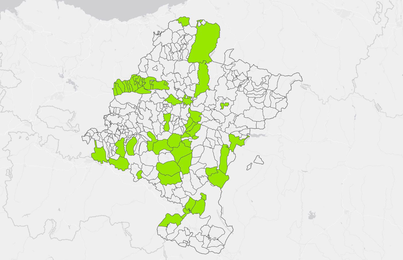 Mapa que muestra las localidades incluidas en el Pacto de Alcaldías por el Clima y la Energía. GOBIERNO DE NAVARRA