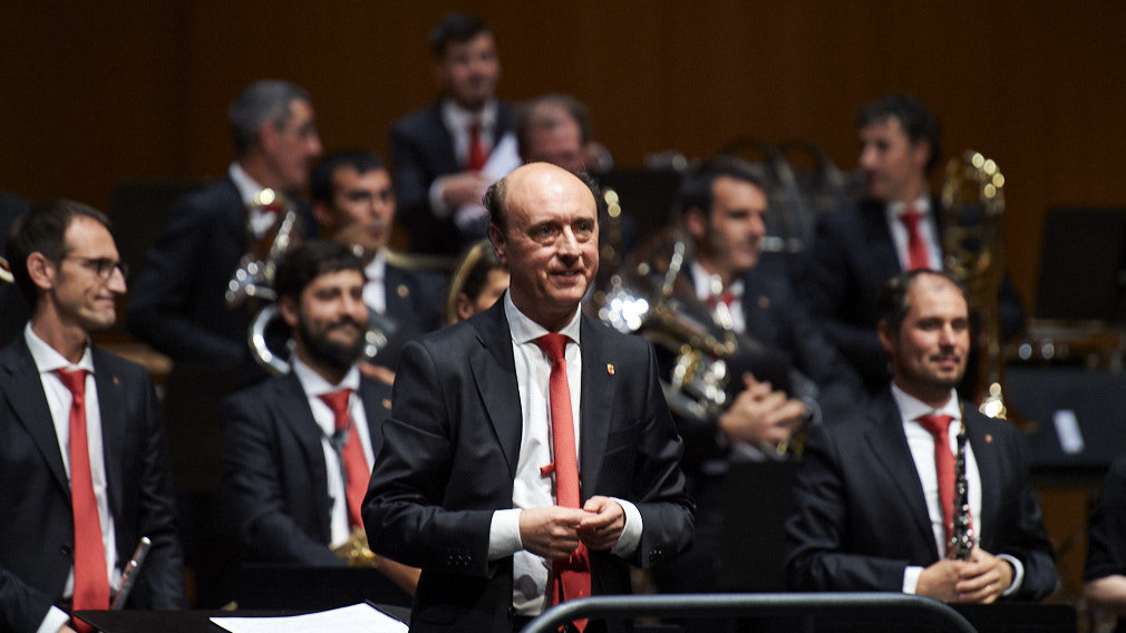 El director Vicent Egea, durante el concierto 'La Pamplonesa a cien'. MIGUÉL OSÉS