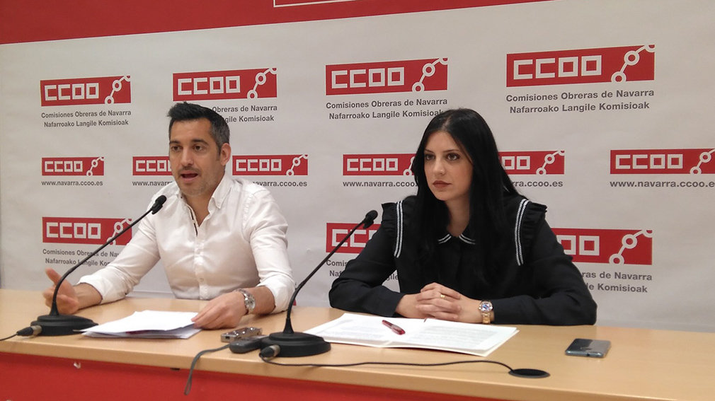 El responsable del gabinete de estudios de CCOO de Navarra, Joseba Eceolaza, y la responsable de Mujer y Juventud del sindicato, Nerea Contreras. EUROPA PRESS