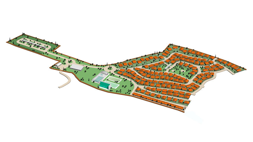 En la primera fase se van a construir 210 parcelas desde 170 m2 hasta 350 m2 de superficie con bungalows de 56 m2 (con salón-cocina, dos habitaciones, baño y porche exterior de 20 m2) destinadas a los nuevos socios del camping.