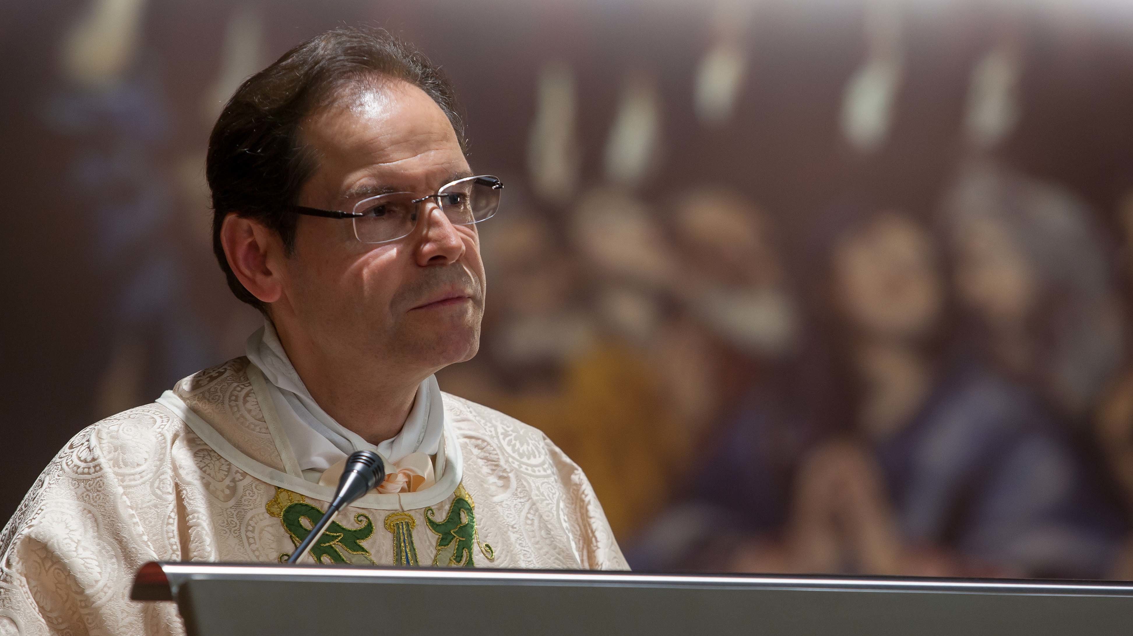 Pardo, de 52 años, acaba de ordenarse sacerdote tras tres años preparando en Roma su doctorado en Teología Moral y este pasado viernes ofició su primera misa solemne en la Universidad de Navarra. Lo hizo en el edificio Amigos del centro académico, en un auditorio al que acudieron decenas de compañeros y familiares del profesor.