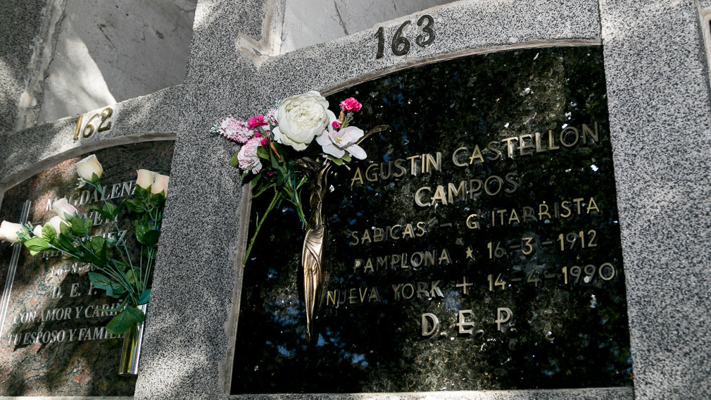 No hay que andar muchos metros en el camposanto pamplonés para cerciorarse de la verdad de sus palabras. En una fila de nichos próxima al panteón de su familia, descansa la figura gitana más relevante de toda Navarra, un hombre que llevó el flamenco allende los mares y que es considerado un pilar insustituible de la guitarra. Se trata de un pamplonés que nació en la calle Mañueta como Agustín Castellón Campos y que murió en Nueva York como Sabicas, el impulsor del flamenco. Falleció en la Gran Manzana pero dejó claro a sus hijos su deseo de yacer en su ciudad natal. Y aquí reside, en un pequeño nicho, casi anónimo, en el que no cabe todo el arte que desplegó en vida.