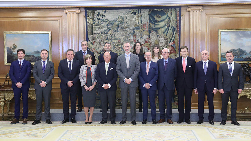 Su Majestad el Rey Felipe VI ha recibido este viernes en audiencia en el Palacio de la Zarzuela a los miembros del Comité Ejecutivo de la Cámara de Comercio, Industria y Servicios de Navarra con motivo del 120 aniversario de la institución y de la renovación de sus órganos de gobierno para el periodo 2018-2022.