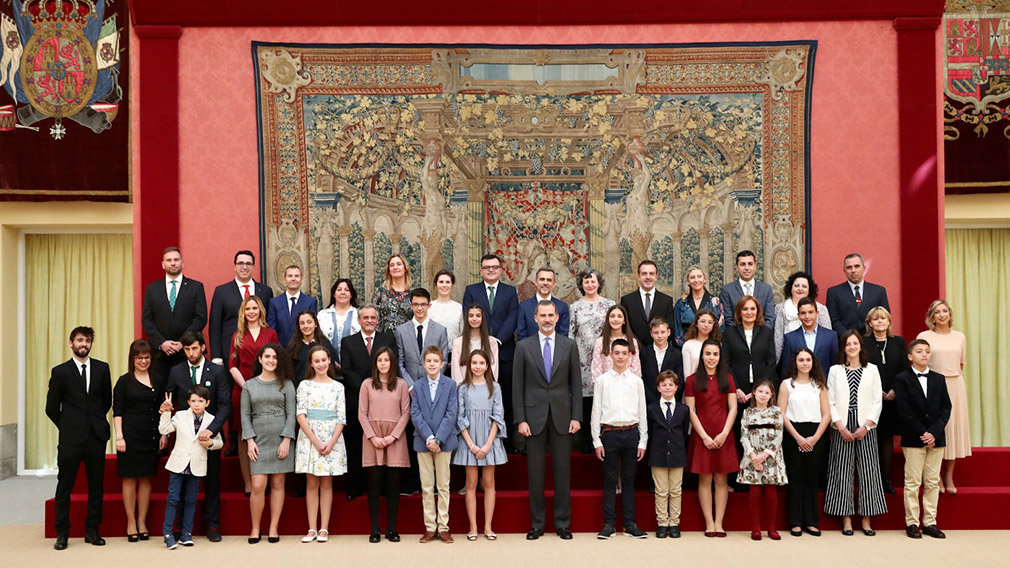 En total, han sido 20 los escolares que han asistido a la tradicional recepción real que don Felipe celebra para los ganadores del concurso: 17 procedentes las distintas comunidades autónomas, dos de las ciudades autónomas de Ceuta y Melilla y un ganador en la categoría de Educación Especial.