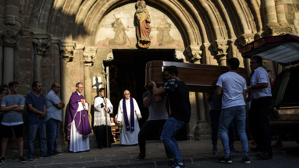 El dolor y la emoción han imperado en el funeral por las víctimas del triple asesinato de Cáseda que se ha oficiado esta tarde en la iglesia de Santiago Apostol de la cercana localidad de Sangüesa.