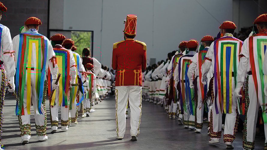 La localidad fronteriza pone el ritmo al Domingo de Resurrección con sus conocidos bolantes, interpretando su popular danza, marcada por los cascabeles y las cintas de colores de sus trajes. Además, llevan una boina roja, alpargatas de esparto, una camisa blanca y un pantalón engalanado con bisutería y cintas. Por la mañana bailan en la plaza del pueblo y por la tarde en el frontón.