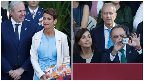 También ha acudido la presidenta del Gobierno de Navarra, Maria Chivite, que ha seguido el desfile junto a las presidentas del Partido Popular de Extremadura y Madrid, María Guardiola e Isabel Díaz Ayuso.