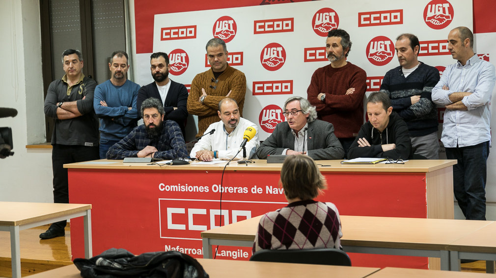 Representantes de CCOO y UGT explican las razones por las que han firmado el convenio colectivo de TCC. IÑIGO ALZUGARAY