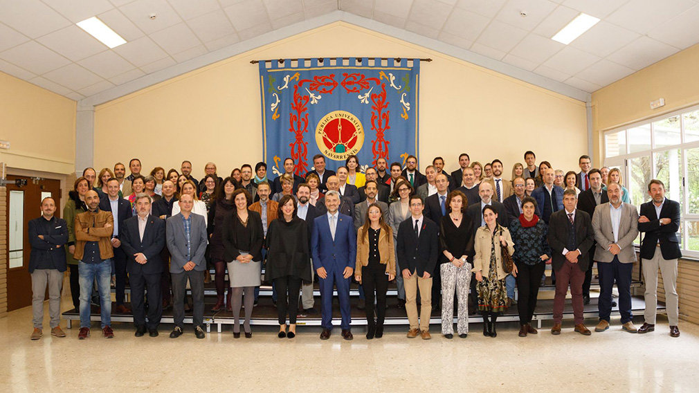 La ceremonia, que reunió a cerca de 80 personas, estuvo presidida por el rector, Alfonso Carlosena, y también se contó con la presencia del decano de la Facultad de Ciencias Humanas y Sociales, Miguel Rodríguez Wilhelmi; la directora-gerente de la Fundación Universidad-Sociedad, Iosune Pascual, y representantes de los equipos directivos de los seis centros de la Universidad, además de la vicerrectora de Estudiantes, Empleo y Emprendimiento, Cristina Bayona.