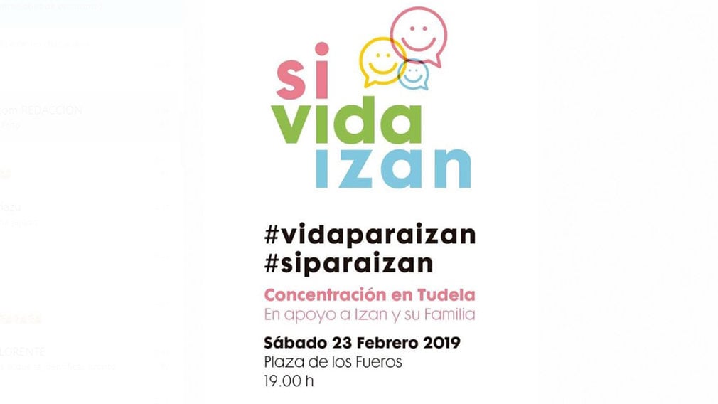 La capital Ribera ha decidido ir más allá y convocar el próximo sábado 23 de febrero una manifestación en apoyo a Izan y a su familia, que tendrá lugar a las 19.00 horas en la Plaza de los Fueros.