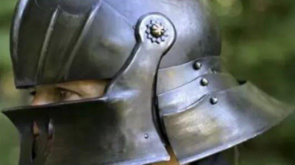 Y antes de abandonar el ajuar de este vianés, echemos un vistazo a este casco funcional alemán del sigo XV. Su precio es 139 euros, pero obtendremos a cambio un "impresionante casco funcional inspirado en los usados en Alemania en el siglo XV". La visera se refuerza y la forma de encajar alrededor de la cara sin dejar de ofrecer un buen flujo de aire a través de sus orificios. La comodidad ante todo, ya que "viene forrado en piel".