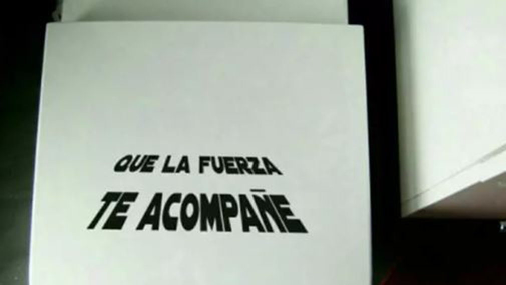 Este activo usuario pamplonés también tiene entre sus pertenencias artículos de humor, como un vinilo que resulta ideal para la taza del váter. "Que la fuerza te acompañe", reza su mensaje. Por cinco euros, te puedes hacer con él.