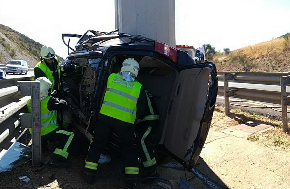 Los dos ocupantes del vehículo han sufrido una salida de vía y han impactado contra un pilar de hormigón. El ocupante que ha resultado herido grave ha tenido que ser desatrapado por el cuerpo de bomberos de Estella y trasladado en una ambulancia medicalizada al Complejo Hospitalario de Navarra.