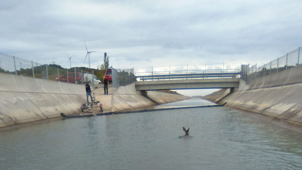 Asimismo, los bomberos del parque de Tafalla han tenido que intervenir esta mañana para rescatar a un corzo que había caído al Canal de Navarra y no podía salir por sí solo.![]()