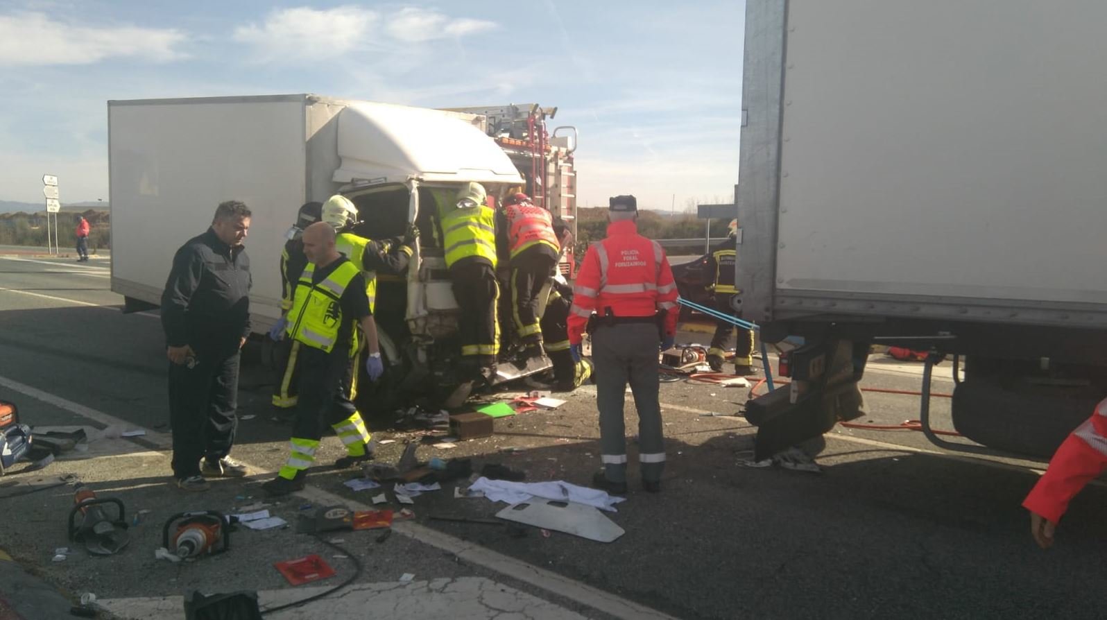Un hombre ha sido evacuado en helicóptero tras resultar herido grave en la colisión de una furgoneta y un camión ocurrida en Caparroso esta mañana de martes como consecuencia de una infracción de tráfico de otro camionero que se ha dado a la fuga.