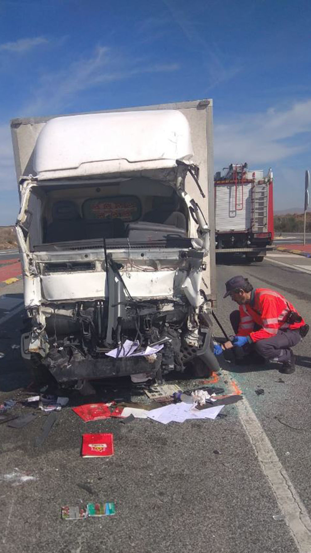 Los dos ocupantes de la furgoneta han quedado atrapados en la cabina y padecen heridas graves por las que han sido atendidos.