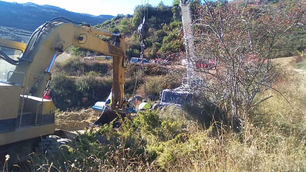 Los bomberos han confirmado que el rescate ha sido muy laborioso, ya que incluso ha sido necesaria maquinaria pesada (una grúa y una máquina retroexcavadora de un vecino) para levantar el tractor del barranco por el que había caído.
